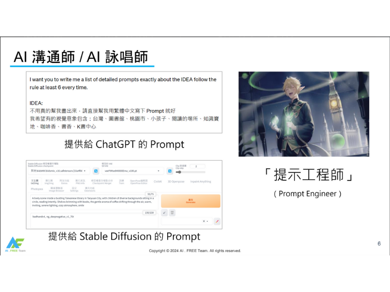 在實作部分,學生將接觸多種先進的生成式 AI 工具,包括文字生成工具如ChatGPT、資料搜索工具如Copilot、簡報製作工具Gamma及圖像生成工具Image Creator等。這些工具的應用不僅提升學生的技術能力,還激發他們的創造力,使他們能夠製作出專業的多媒體內容。通過這些實作練習,學生將學會如何利用AI輔助學習和研究,提升數位素養。