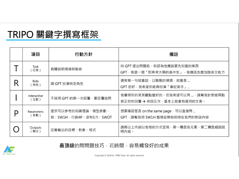 本課程旨在提升高中生對生成式 AI 的基本原理、應用技巧與倫理考量的了解。課程內容包括生成式 AI 的發展歷史、與 AI 溝通的技巧、數據查找、專業簡報製作、多媒體創作及使用倫理。通過實作案例,學生將學會使用生成式 AI 工具如ChatGPT、Copilot、Gamma等,增強數位素養及創意潛力。課程總時數為3小時55分鐘,分為6個章節,共28個單元,每個章節包含選擇題或實作題的作業。這些內容將幫助學生掌握生成式 AI 技術,並應用於學習和日常生活中。