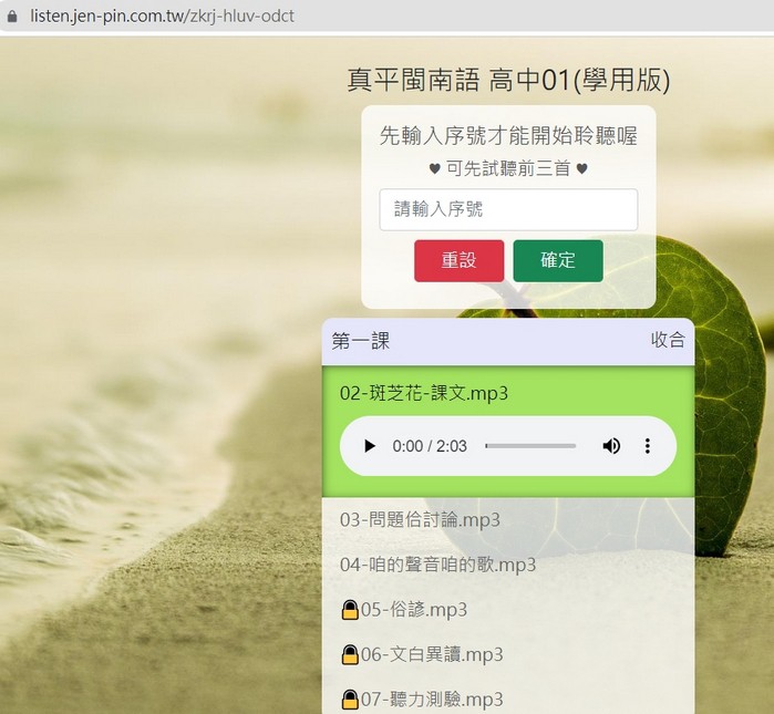「課文朗讀」提供專業錄音內容,著重在語調及情境的表達;「問題佮討論」則是配合課本內容設計題目,讓學生分組討論發表過後,提供參考解釋;在課本提供連續的漫畫情境事件圖,讓學生可分組討論,上臺說故事,音檔提供口語串接故事範本給學生參考;「俗諺」則是配合課本內容,提供適合的俗諺與例句朗讀音檔;「文白異讀」藉由音檔的聆聽,讓學生了解在不同語詞當中,適合使用的讀音,如同華語的破音字;各冊的「語文天地」內容也都有提供專業的音檔解釋。