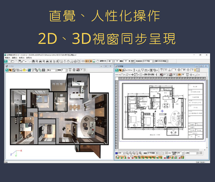 1. 全中文介面,容易學習,以直覺建構3D空間,人性化的操作,快速上手。