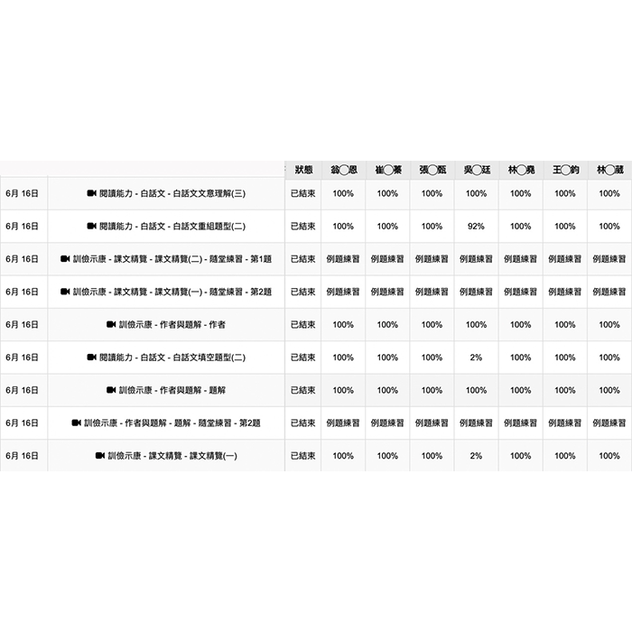 5. 搭配功能:老師專屬追蹤影片播放進度頁面、同步完成率觀看、全班或個人觀看紀錄追蹤。