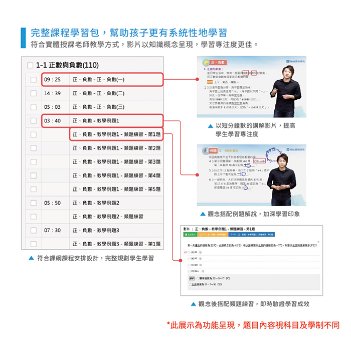 4. 重視科目的理解,影片從基礎觀念到延伸學習都包含,可以讓老師挑選適合的影片進行預習、複習、補強或缺課補課。