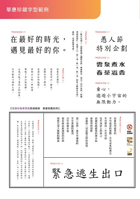 基本字型:華康金剛黑、華康青花黑、華康UD黑、華康愛情體、華康細明體、華康新特明體、華康新特圓體、華康儷宋等。