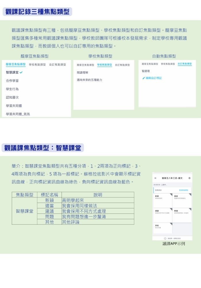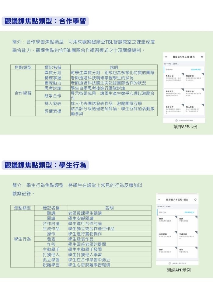 數位觀議課時,觀課專家或教師團隊可使用蘇格拉底議課app進行觀課數據紀錄,標記關鍵的時間點,以文字、照片、錄音、錄影方式記錄觀察重點內容,不管是手機、平板或筆記型電腦都可以操作。
