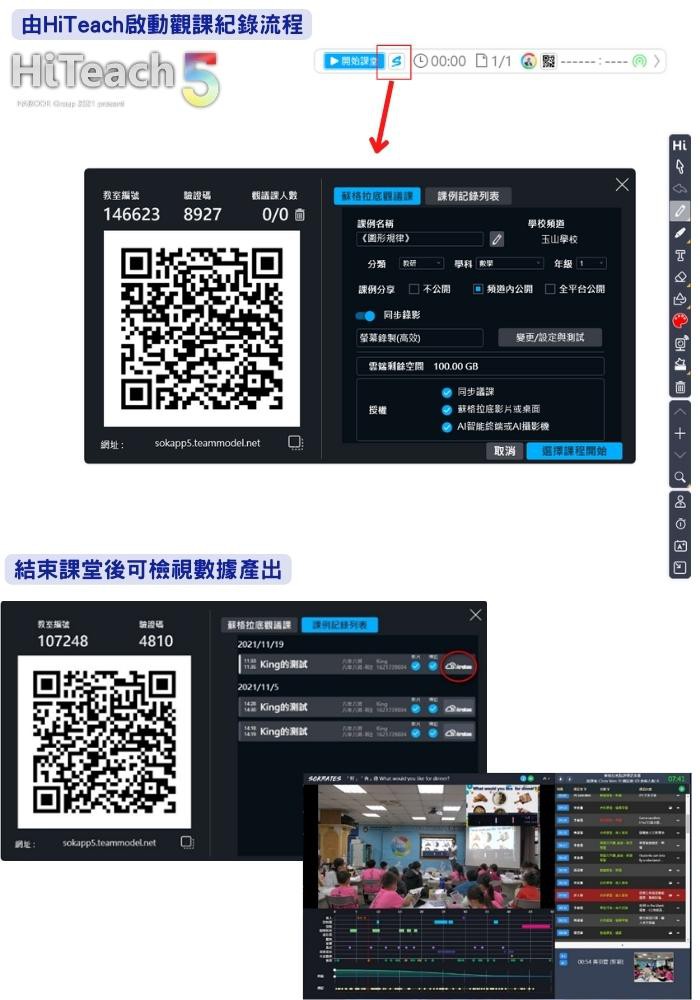 ●使用教室中的HiTeach軟體即可發起觀課活動與錄製:利用HiTeach教學時,直接就可以發起一堂公開課的觀課紀錄活動,並且啟動影片錄製功能。