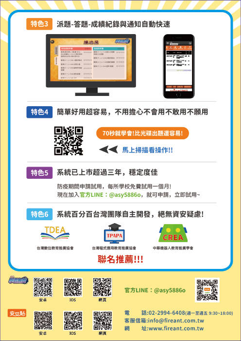 1.老師可使用本系統金安學霸無雙”指定對戰”功能,將班上學生分為兩組競賽搶答,提高課堂學習樂趣,此遊戲模組廣受老師與學生喜愛!