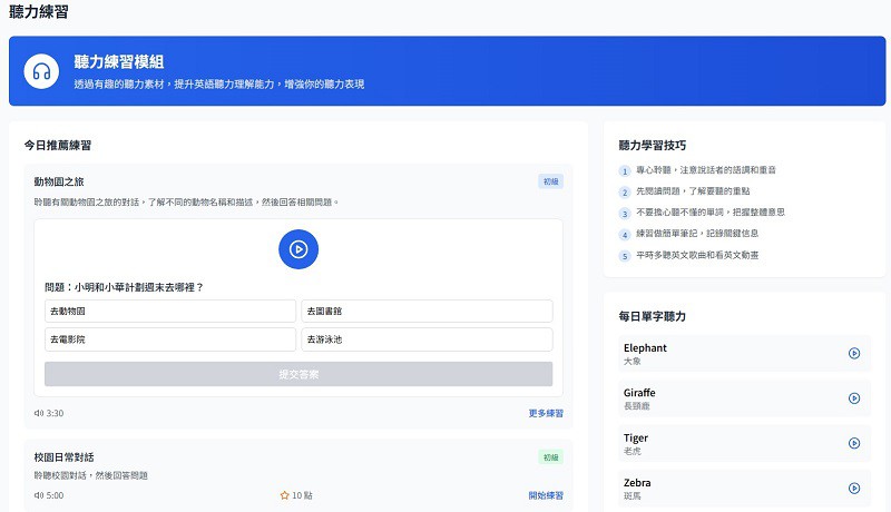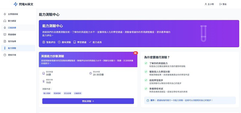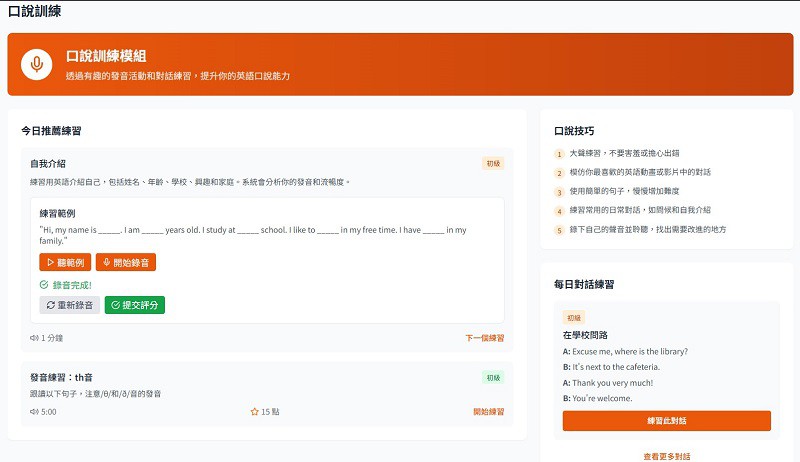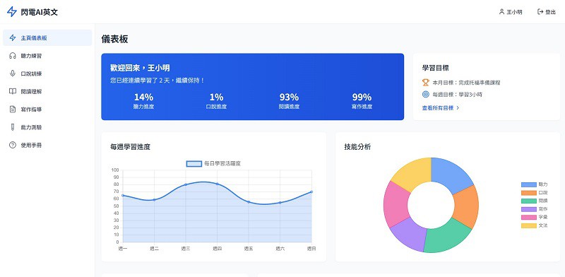 閃電AI英文教育系統是一套專為臺灣學生設計的智能英語學習系統,旨在全面提升學生的英語聽、說、讀、寫四大能力,幫助學生在小考、段考、會考和學測等各類考試中取得優異成績。本系統採用先進的人工智慧技術,包括語音識別、自然語言處理和機器學習,為學生提供個性化的學習體驗。在聽力訓練方面,系統提供豐富的原汁原味聽力素材,涵蓋日常對話、學術講座和新聞報導等多種場景,並配有難度分級和速度調節功能;在口說練習方面,系統能夠即時分析學生的發音、語調和流暢度,提供精確的糾正和建議,幫助學生建立自信的口語表達能力;在閱讀理解方面,系統收錄了大量符合臺灣考試要求的文章,並配有詞彙解釋、文法分析和理解問題,幫助學生掌握閱讀技巧;在寫作訓練方面,系統不僅能夠自動批改學生的作文,還能分析寫作中的語法錯誤、詞彙使用和邏輯結構,提供具體的改進建議。此外,系統還整合了歷年考題分析和考試趨勢預測,幫助學生有針對性地備考。通過這套全面而智能的學習系統,學生能夠在輕鬆愉快的環境中有效提升英語能力,為各類考試做好充分準備。
