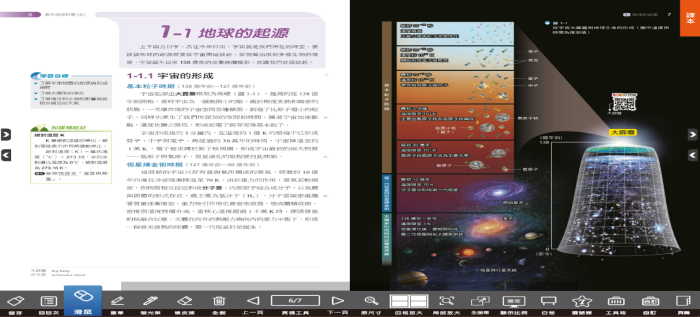 2.學用課本、習作電子書頁面下方可彈性運用操作工具列,有電子閱讀所需各式工具(滑鼠、畫筆、螢光筆、橡皮擦、全刪、四格放大、局部放大、上下頁),還有方便註記或筆記功能(含便利貼、連結、插入文字、插入注釋、可撕貼紙...)等。