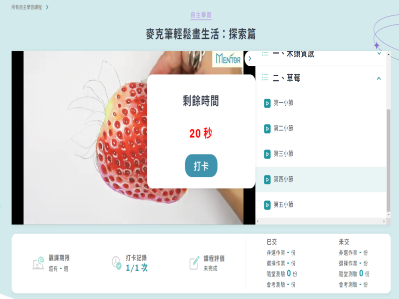 4.本門課每單元皆有學習任務,幫助學生將每單元觀念應用,檢視學習效果並豐富學習歷程。
