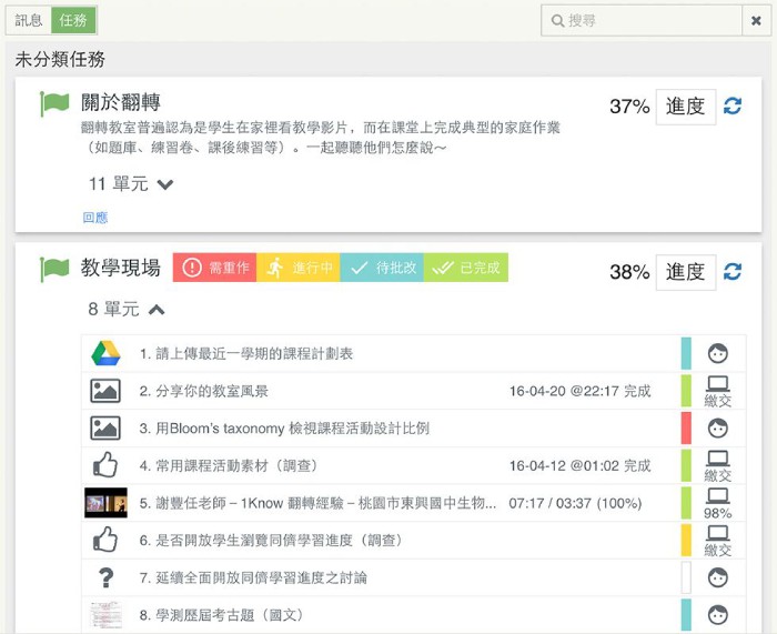 方便蒐整網路資源,重新排序加值應用。將蒐集的資源,彙整成自己的知識庫! 單元類型支援創建影片、網頁、檔案、試卷、練習、投票、問答、塗鴉、嵌入;方便彙整各類素材,包括YouTube, Dropbox 、Drive、Quizlet、PhET…)