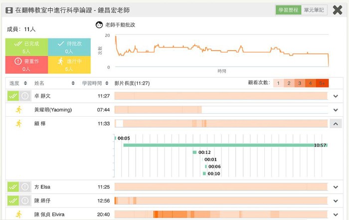 登入頻率?閱讀進度?筆記情形?老師追蹤學生學習進度與成效,對於表現落後的學生進行輔助教學。