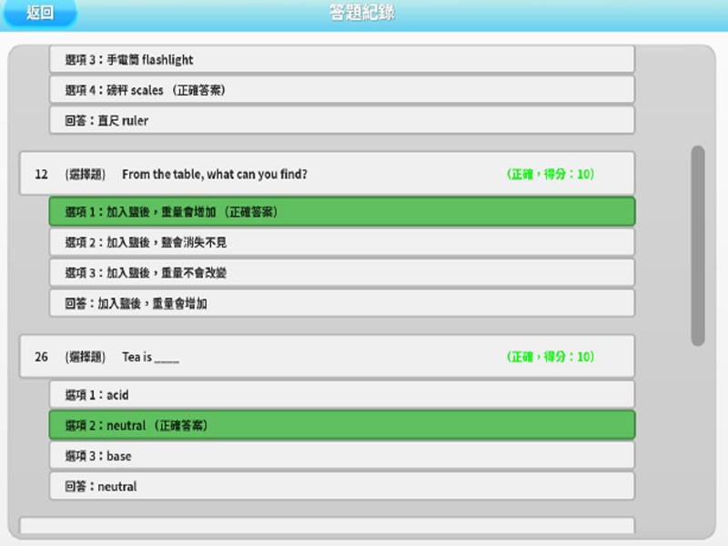 可依據學生答題情形評分、紀錄以供老師評量學習