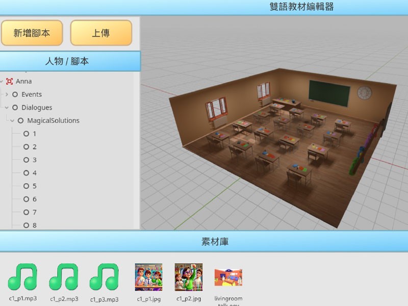 提供腳本編輯器,以方便上傳至平台產生全新教材,供學生學習