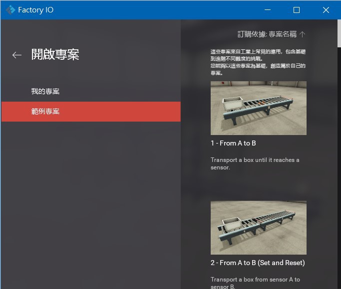 內建20個以上範例場景:3D虛擬實境工廠依照實際的工廠運作,提供超過20個常見的場景,讓初學者可以快速的進入環境當中。同時也可以用這些場景當作基礎建設,繼續發展出自己的新場景應用。