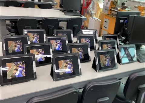 當一群學生拿著平板在戶外學習時,老師機顯示每臺學生機畫面,讓老師隨時監看、輔導、互動、核實。