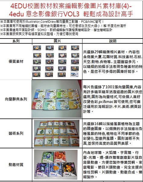 12.影像應用:適用校園學術及教育課程簡報編輯文宣海報設計,是一套多用途圖庫,亦可透過線上網頁相簿功能,讓老師輕鬆將圖庫上傳,在教學上方便學生下載使用。能,讓老師輕鬆將圖庫上傳,在教學上方便學生下載使用。
