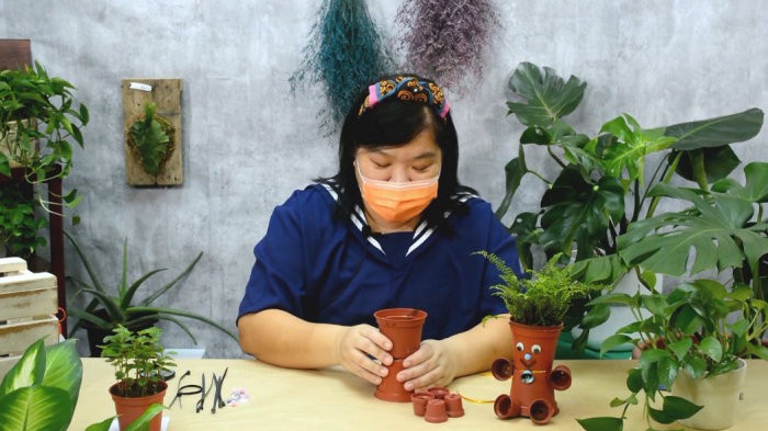 課程每堂約35分鐘,共10堂課,包含:(1)花葉作臉譜、(2)葉脈紋卡片、(3)天然色書籤、(4)彩色花盆DIY、(5)白金葛換新家、(6)花草傳情地球村、(7)葡萄藤乾燥花圈、(8)熱情花盆娃娃、(9)造型水苔球、(10)水耕亞曼尼粗肋草