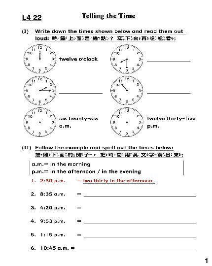 ※Times of the day 一天裡的時間