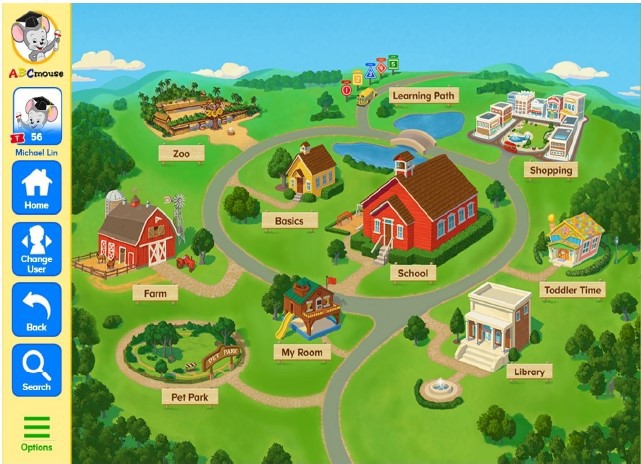 三、學生自學: ABCmouse具有階梯式、完整的學習路徑以及獨特的獎勵票系統,能有效提昇 學生主動的學習興趣與意願,迅速激發學習潛能,養成積極的學習態度。