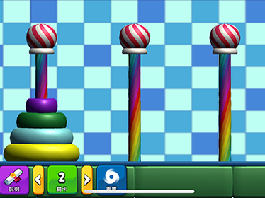 智慧之塔:將塔中的盤子移動到另一個柱子,並在空白柱上重組成與目標一致的結構,提升規劃能力與邏輯推演技巧。
