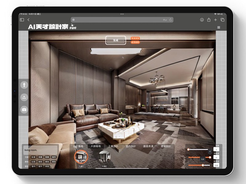 學生可直接上傳草圖、3D模型或即時拍攝的照片,AI會根據空間需求自動生成風格渲染,快速完成初步設計提案。