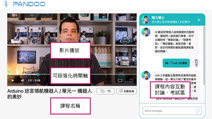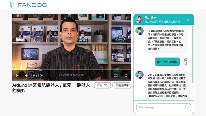 除了文本內容,「AI課程創作大師」還支持將教學影片融入其中,教師可透過結合互動式教學影片與AI虛擬助教,為學生打造生動有趣的課堂體驗。這種方式不僅增強了課程的互動性,還讓學生在視覺與實際操作的結合中,更輕鬆掌握知識點。