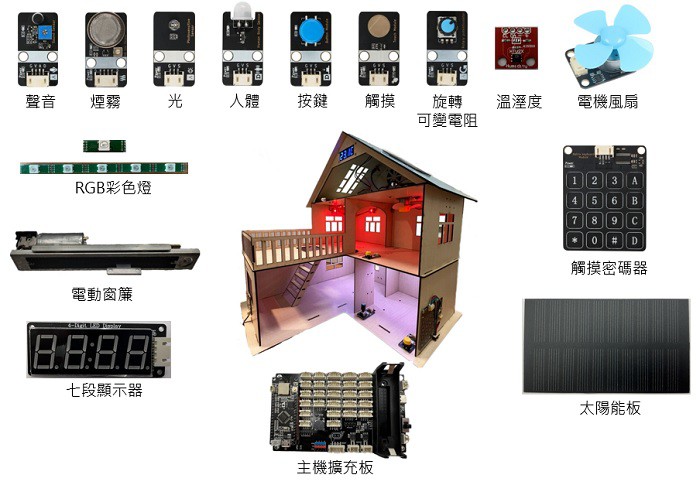 智慧屋教學模組是以智慧家居為主題的專題式學習套件,通過手作搭建家居的場景,結合EPY硬體連接多種感測器使家居變的智慧化