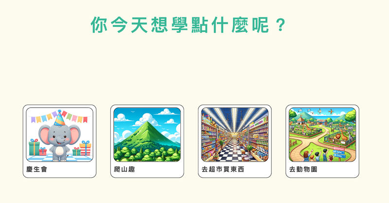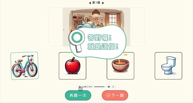 一、圖像直覺學習:以「聽故事,選圖片」方式,帶領孩子直覺回答。適合正在進行聽語訓練(聽覺理解困難)、低年級、或障礙程度較重的孩子,以強化聽覺理解、機器音辨識及認知訓練。