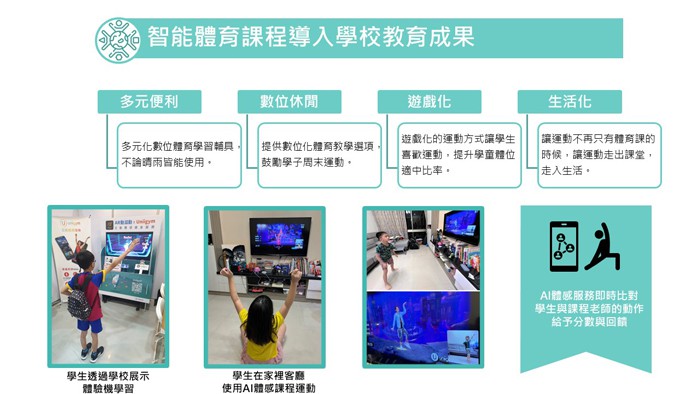 目前臺灣數位學習系統已近普及,一般學生既有的學科(國英數地理歷史)皆有線上課程、講義、測驗題,但唯獨體育課程難易透過數位、智慧化方式供學生隨手可得學習方式,因此教育局與Uniigym互動體感服務公司合作,提供適合不同學齡對象之分齡、分項之運動課程,協助體育課程數位轉型。