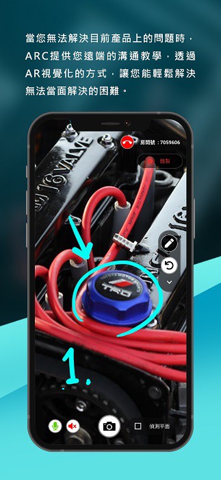 本產品為滿足受現實因素影響 (地域、疫情、成本……)而無法實際前往現場的人,及訊息需被視覺化的需求,所開發完成的AR遠距溝通平臺「ARC」。