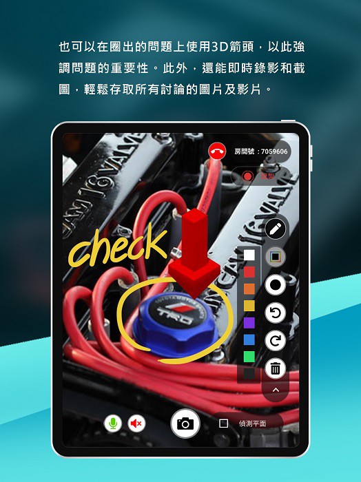 四、文字註記功能:通話時可以直接在畫面上打字註記,不需要使用額外程式,溝通更快速。