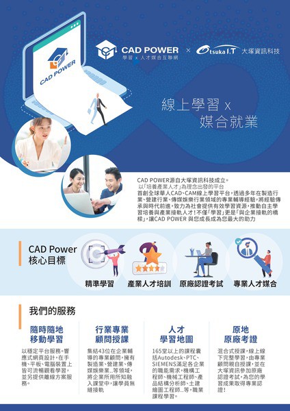 大塚教育訓練依據客戶的學習需求,規劃從入門、基礎到進階、專業的課程,提供不同階段的選擇讓客戶學習更有效率、技能更卓越!以小班教學模式照顧每位學員的進度,快速學習軟體介面,其中包含機械設計、產品造型設計、工程分析…等。主要教學內容以專業、實務性為導向,學員共同學習模式及企業包班模式進行,成效更貼近工作需求。