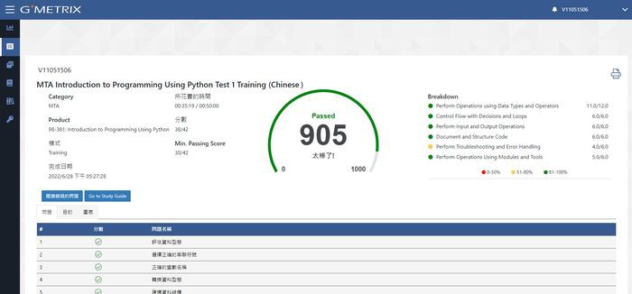 (5)測驗結束後,皆會產生完整應用能力解析報告分析,使學生於自我測驗後後能清楚了解學習展望。