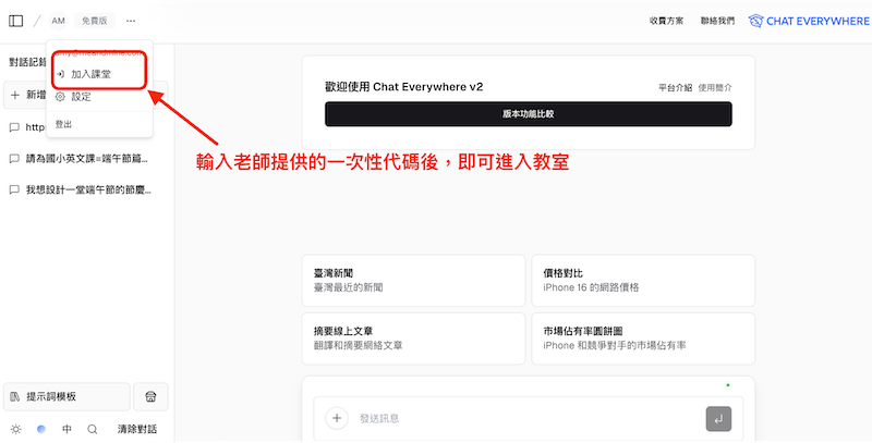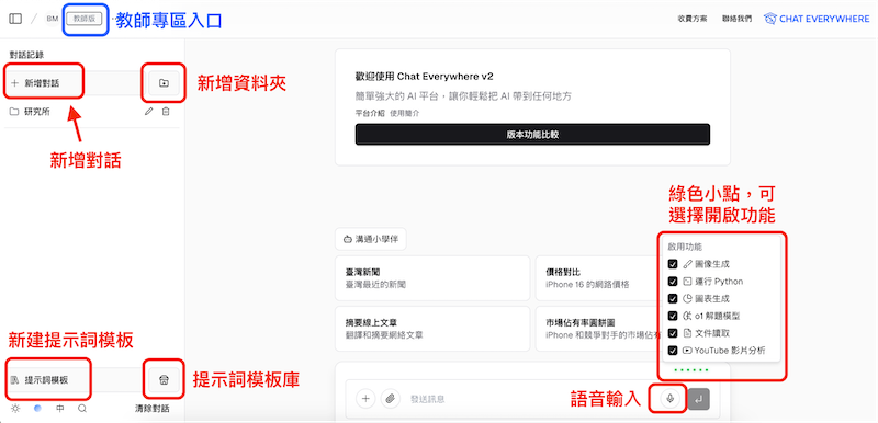 * 提示詞模板提供學生更彈性與客製化的練習工具