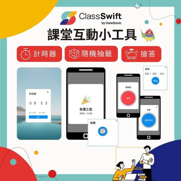 • 隨身課堂工具,打造生動課堂:搭載計時器、隨機抽籤、搶答等實用工具,輕鬆打造生動有趣的課堂!