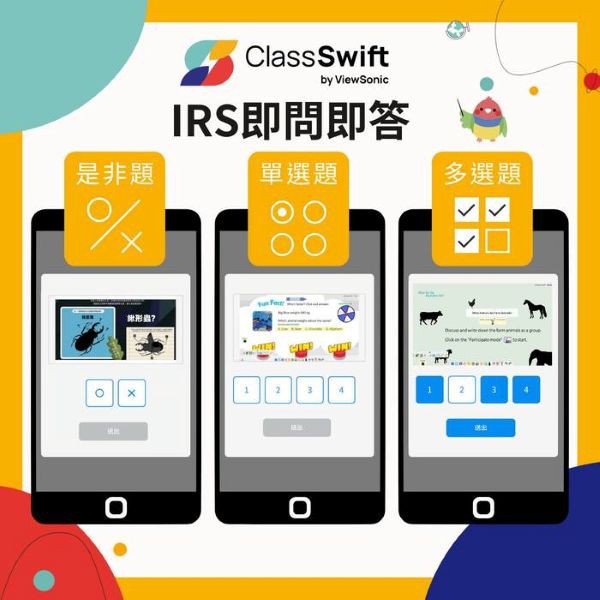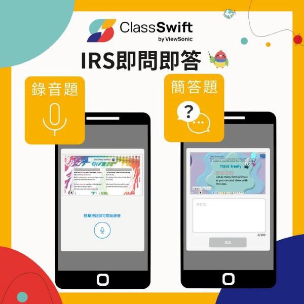 • 隨堂測驗 IRS 即問即答:多元測驗方式:是非題、單選題、多選題、簡答題、錄音題等,提升學生全方位的學習成效。