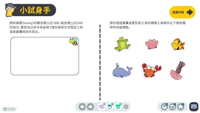其中包含了教學需使用到的畫筆工具、針對重點進行部分頁面放大顯示的