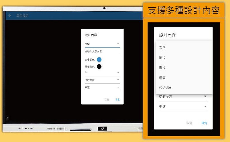 後台介面編輯簡單,可支援影片、照片,幻燈片等同步連線,只要能夠上網的所有裝置,手機、平板、筆電、螢幕、電視,觀看的介面直式橫式皆可。