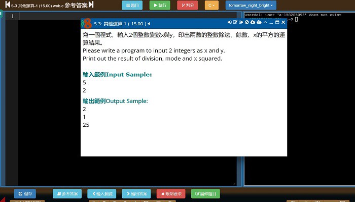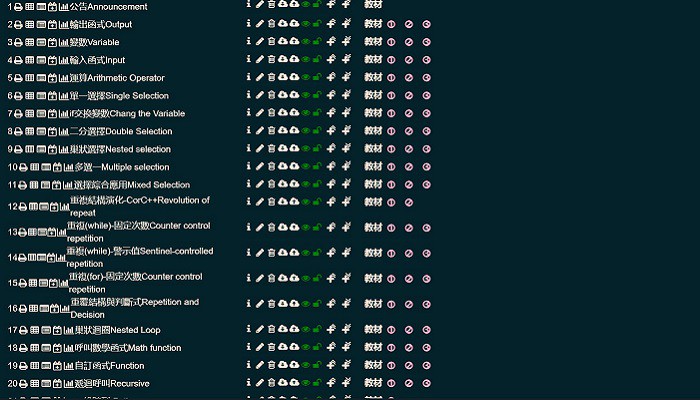 本站臺已發展多語系模組,目前包含中文與英語,在以上的基礎下,教師可以自行發展任何的課程,本產品提供合適國中與高中適用的程式設計雙語課程,程式語言選項包含C、C++與Python,以上的學習地圖搭配精準教學功能,其中學生端可以平臺中產生的數據,撰寫令人信服的學習歷程,而教師端則可以使用的功能包含在發展自己的學習地圖、即時的自動評分、簡明班級狀況、詳盡學情分析、遠端學習指引、成績模組與作弊偵測,幫助老師高效教學。