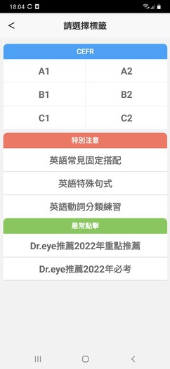 題庫匯入後,可自動或手動標籤分類,使用者亦可點選單一標籤後進行同一類別題庫進行練習