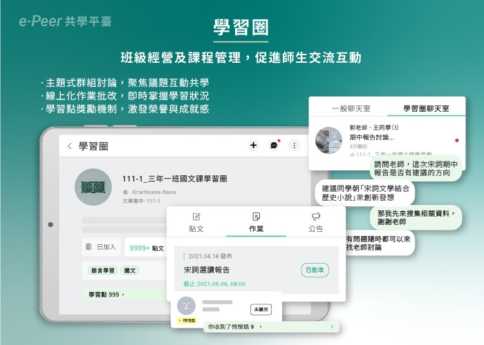 【e-Peer共學平臺】 輔助教師適性教學 & 培育學生素養能力
