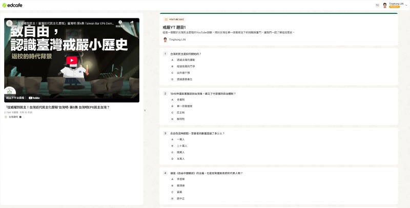 課後測驗: AI測驗生成、AI Youtuber測驗、AI中英文作文批改。
