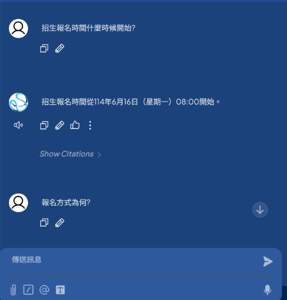 (2)AI學習小幫手:使用對象為學生,由老師將當學習的科目電子教材放入系統內,學生可於課後時間自行詢問小幫手課堂上不理解的問題,進一步提升學習效率。