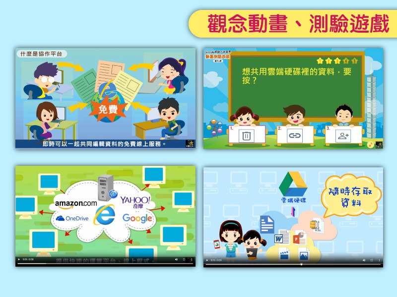 3、課程遊戲:根據課程設計相關的學習小遊戲,增進學習的樂趣。