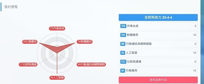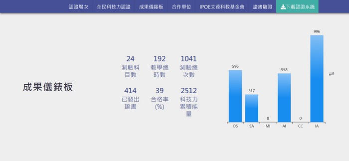 2.透過不同題型的科技力指標及指數認證,學生可從單一「認證證書」不斷累計成學習「歷程證書」,能診斷學習狀況。