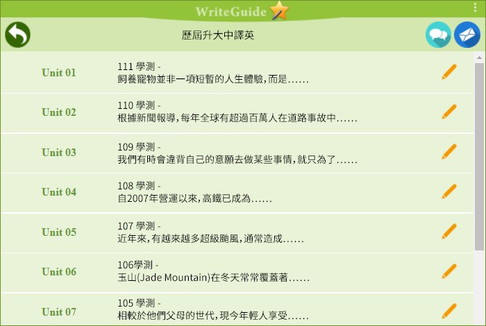 首頁課堂教學軟體 Write Guide 歷屆升大中譯英