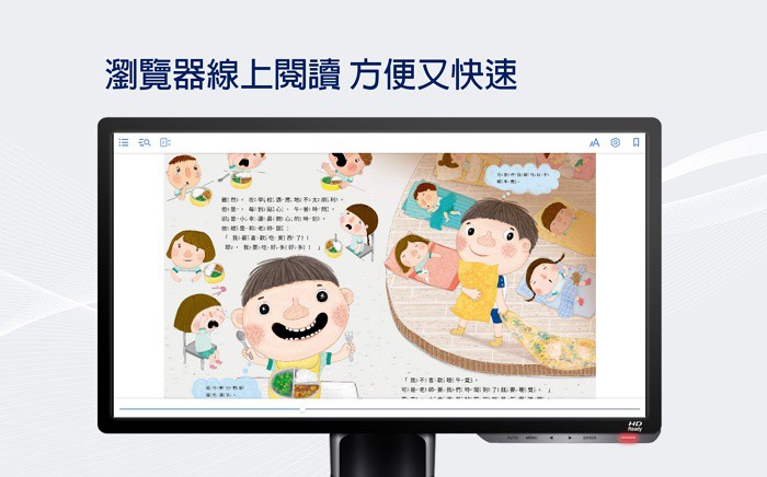 閱讀收藏、縮放、書籍內全文檢索、螢光筆畫線、註記、書籤、頁面分享、EPUB書籍(翻譯、維基查詢、朗讀等<視授權提供>)。