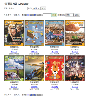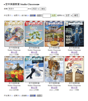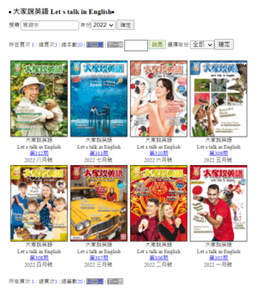 2. 雜誌程度:大家說英語Let’s Talk in English(多益225以上),空中英語教室Studio Classroom(多益550~785),彭蒙惠英語Advanced (多益945以上),每月20日後即可讀聽下期雜誌。