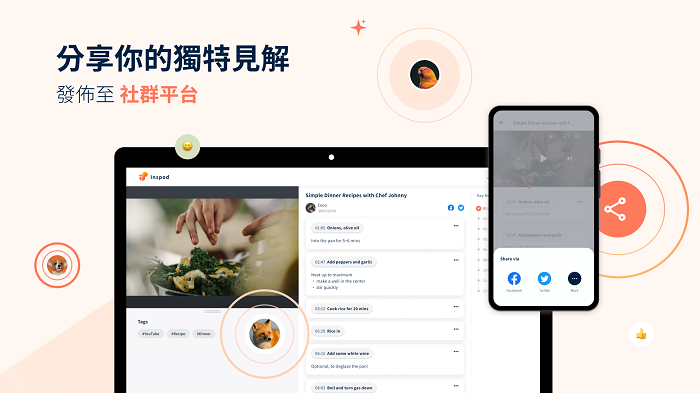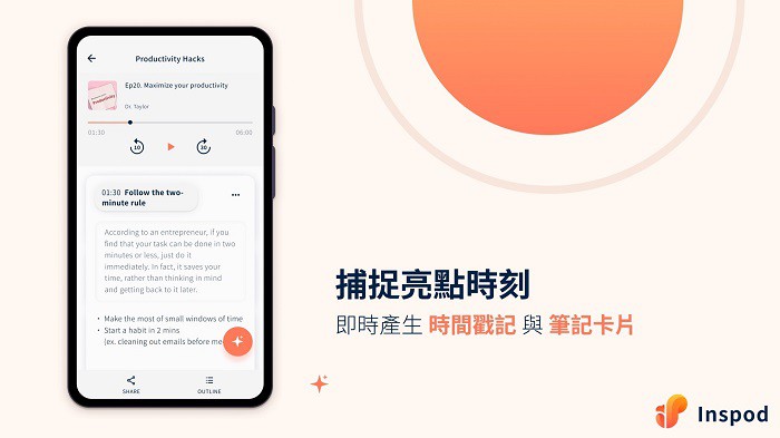 - Inspod結合原始影音與筆記,方便對照複習