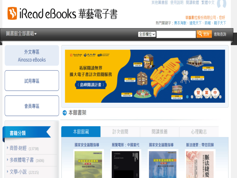 1. 學校的iRead eBooks華藝電子書專屬平臺。